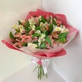 Букет из розовых роз и альстромерий
