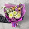 Сиреневый букет роз, хризантем и брассики