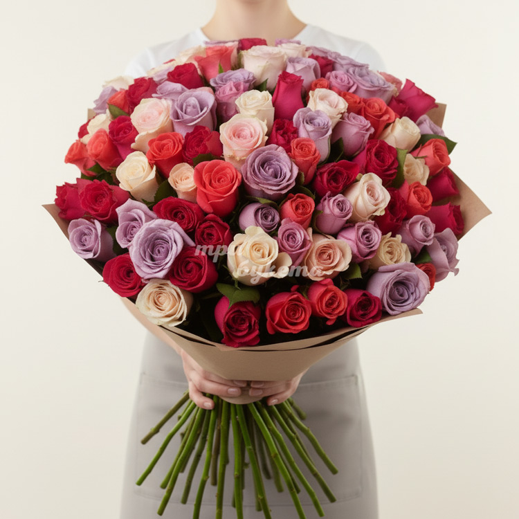 101 разноцв. роза (Premium) 70 см
