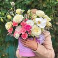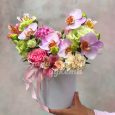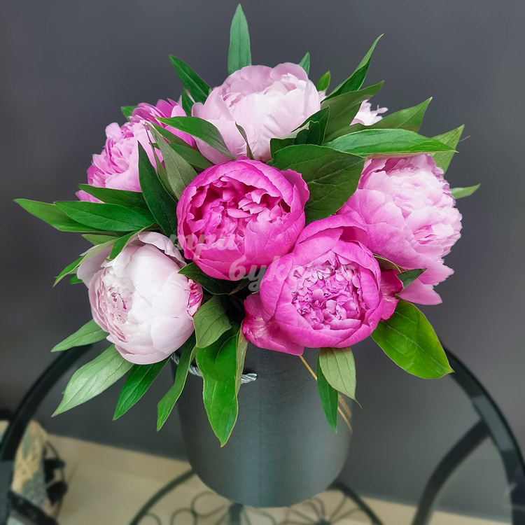 8 пышных пионов в шляпной коробке