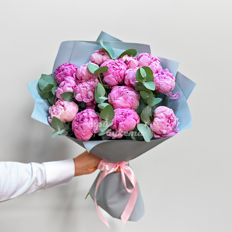 Букет из 15 розовых пионов