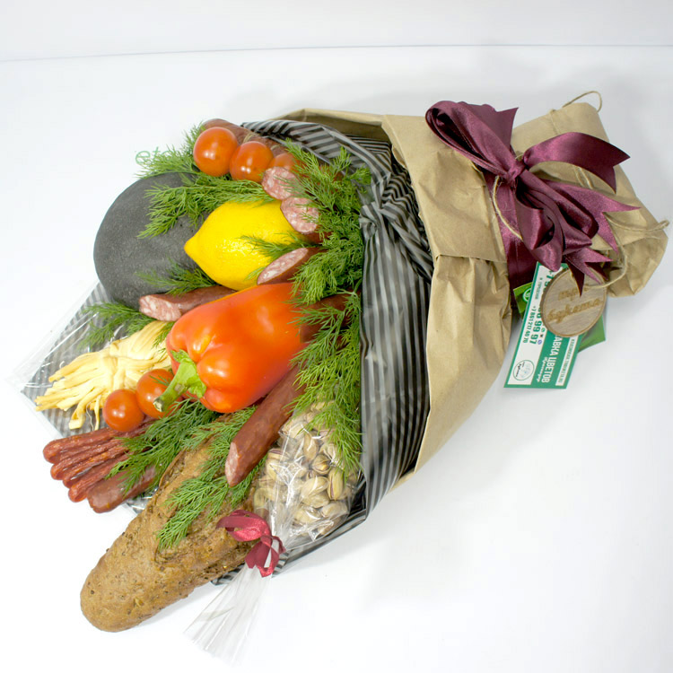 Букет из колбас и булочки