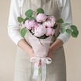 Букет розовых роз и эустом с зеленью