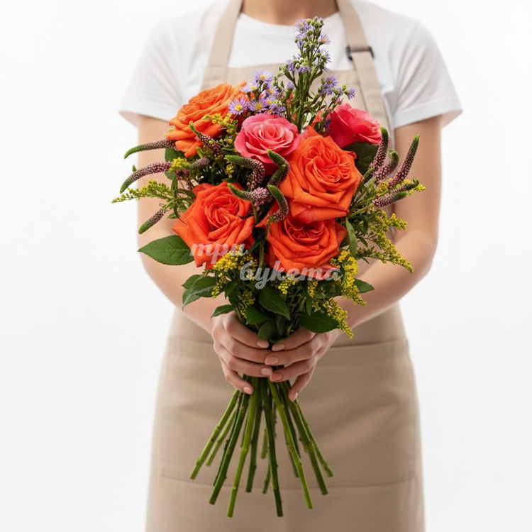 Букет с розами и матрикарией