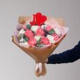 Букет ярких гвоздик, роз и маттиол