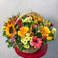Букет желтых кустовых роз и ирисов