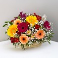 Хризантемы и желтые орхидеи в ящичке