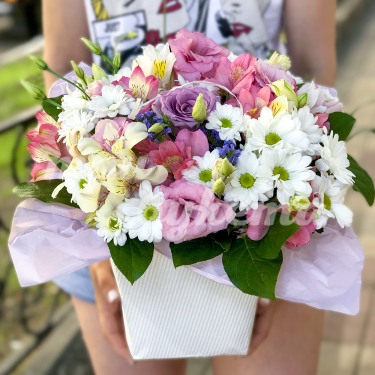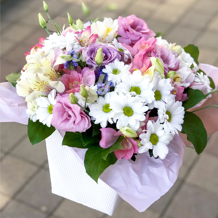Композиция из хризантем и эустом