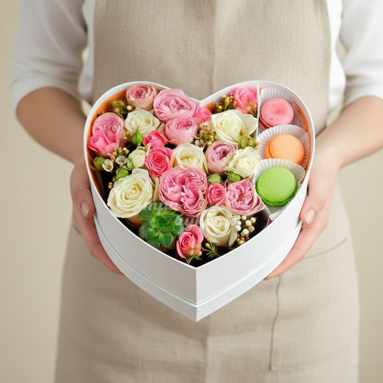 Коробочка сердце с 3 макарунами