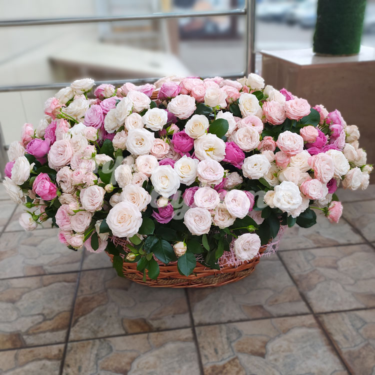 Корзина из 109 пионовидных роз
