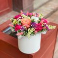 Корзина нежно-розовых роз и эустом