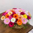Корзина розовых роз и красных тюльпанов