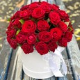 Корзина зеленых роз и бордовых орхидей