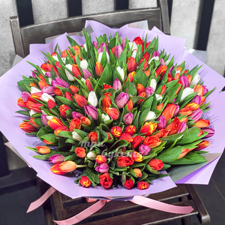 - Разноцветные тюльпаны, 101 шт.