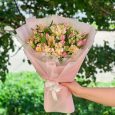 Розовый букет тюльпанов и альстромерий