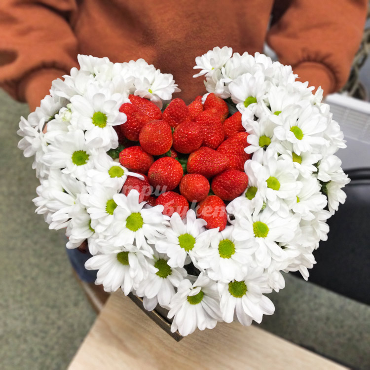 Сердце из клубники и хризантем