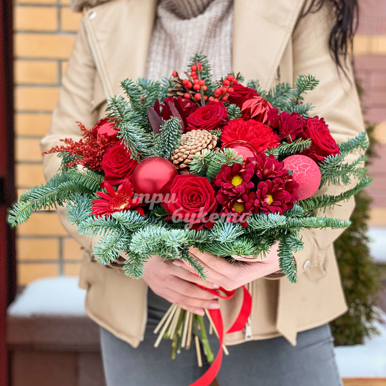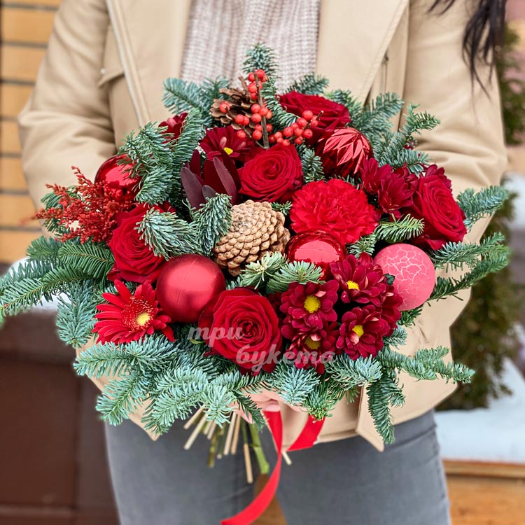 Зимний букет из шаров и цветов